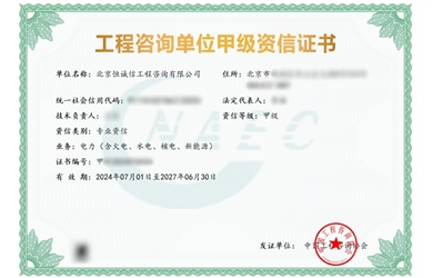 北京恒誠信工程咨詢(xún)公司榮獲工程咨詢(xún)甲級資信