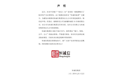 關(guān)于抖音平臺某視頻涉及“恒誠信監理”關(guān)鍵字的聲明