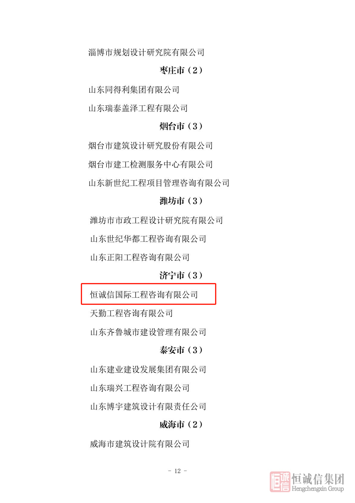 近日,山東省住房和城鄉建設廳公布了2025年第一批“齊魯建造”品牌入選企業(yè)名單,恒誠信國際工程咨詢(xún)有限公司憑借其在工程咨詢(xún)領(lǐng)域的卓越實(shí)力和行業(yè)貢獻成功入選,標志著(zhù)公司在專(zhuān)業(yè)化、品牌化發(fā)展道路上邁出重要一步。