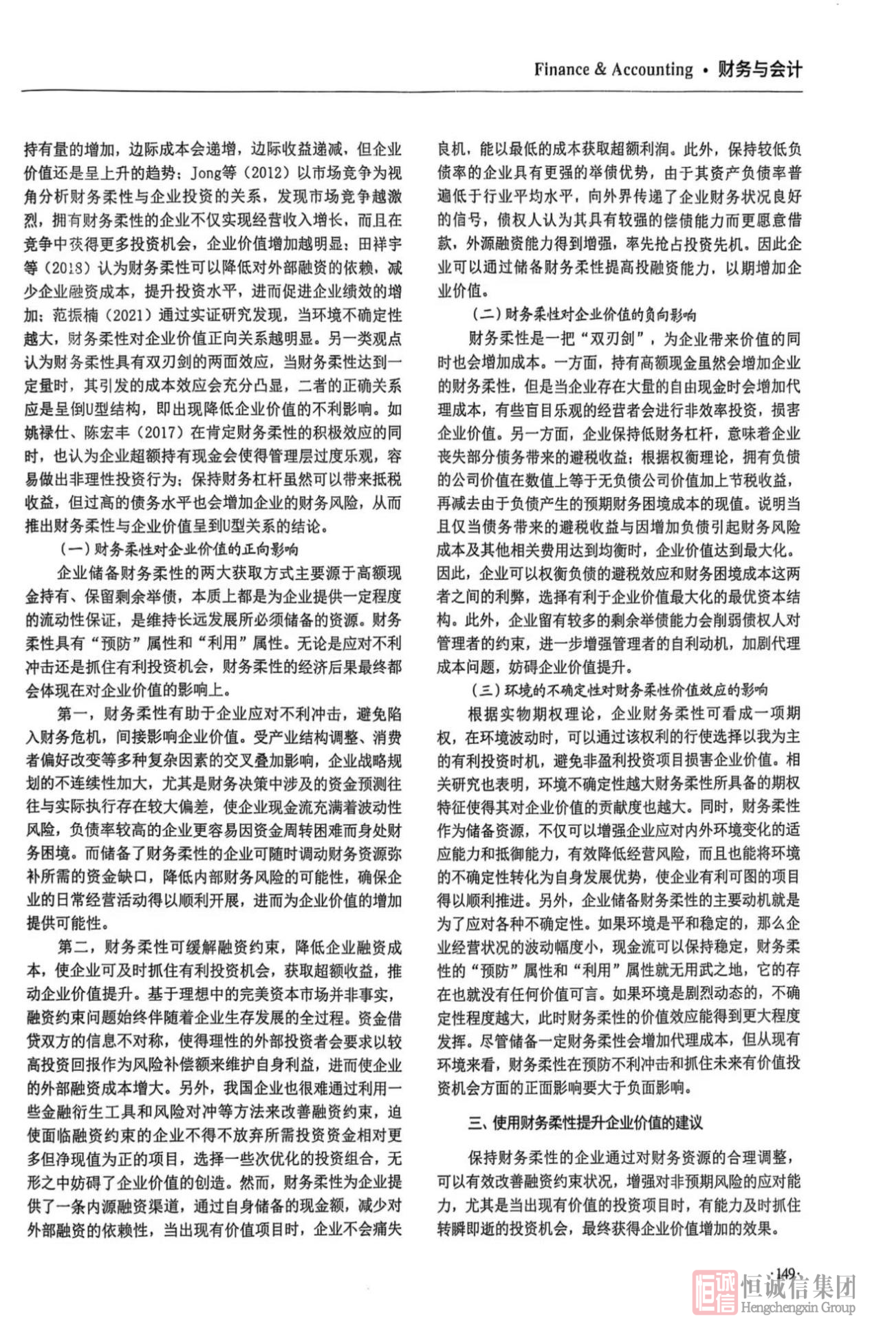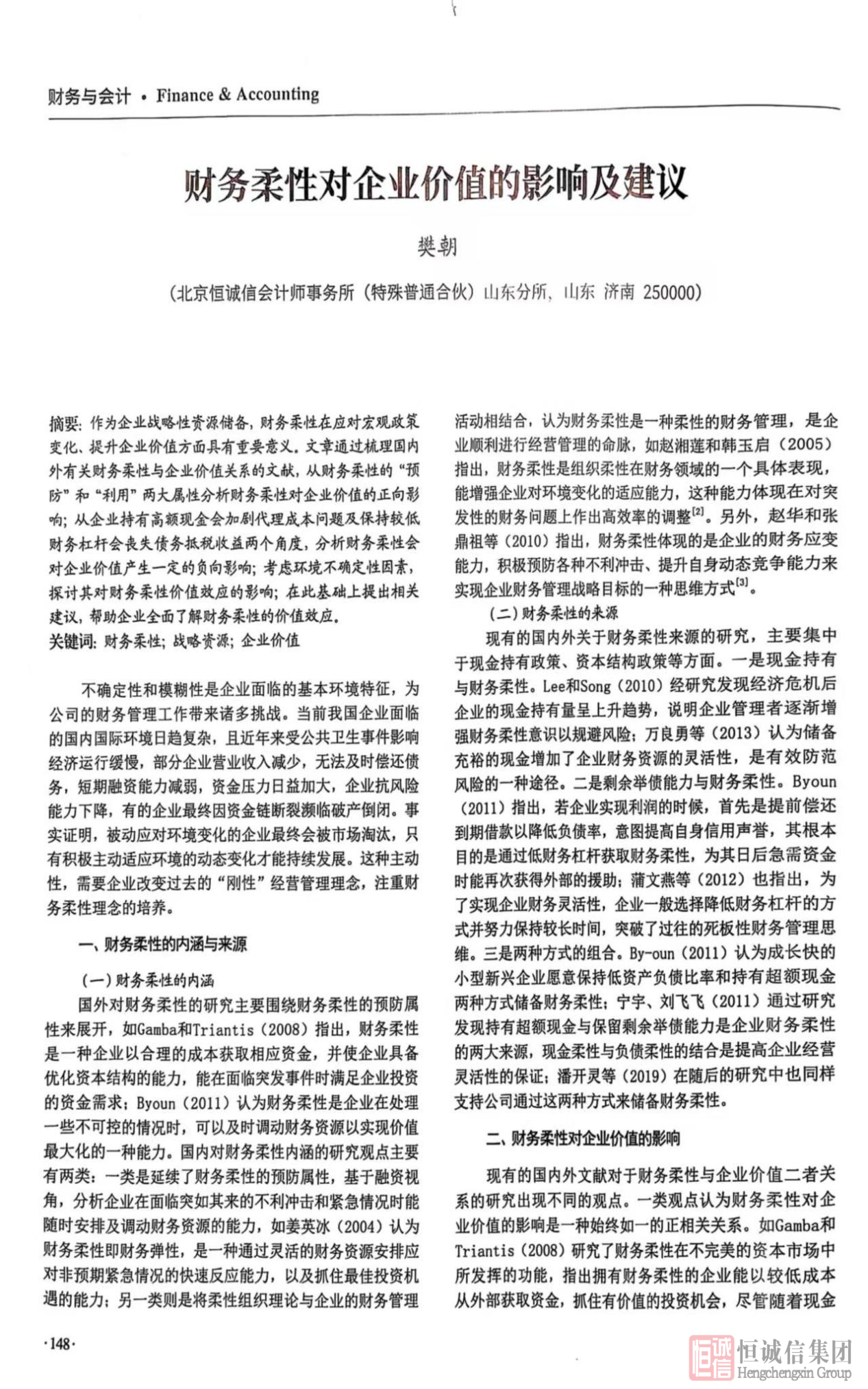 近日,北京恒誠信會(huì )計師事務(wù)所(特殊普通合伙)山東分所樊朝撰寫(xiě)的學(xué)術(shù)論文《財務(wù)柔性對企業(yè)價(jià)值的影響及建議》,在省級期刊《知識經(jīng)濟》的 “財務(wù)與會(huì )計” 板塊成功發(fā)表。這一成果不僅是樊朝個(gè)人學(xué)術(shù)研究能力的體現,更是恒誠信會(huì )計師事務(wù)所重視專(zhuān)業(yè)人才培養、推動(dòng)學(xué)術(shù)研究與知識創(chuàng )新的有力見(jiàn)證。